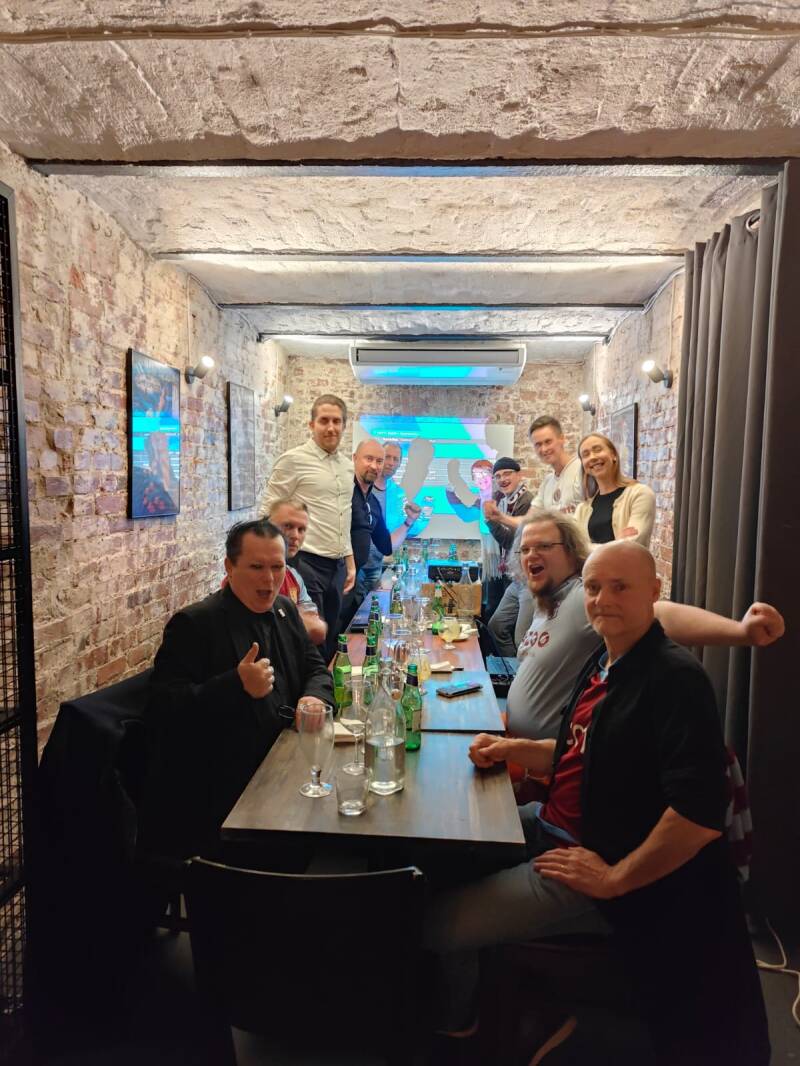 4.3.2025 Olimme noin 10 hengen porukalla Helsingissä Woolshedissä katsomassa Villan hienoa vierasvoittoa Bruggestä. Hauskaa oli porukalla juhlia voittoa ja paikka puolivälierissä on lähellä!